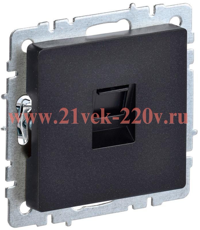 Информационная одноместная розетка с гнездом RJ45 пятой категории, накладка черного цвета для скрытого монтажа, IEK BRITE. BR-K10-1-K02