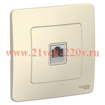 Однопостовая телекоммуникационная розетка скрытого монтажа (встраиваемая) с разъемом RJ45, Бланка Систем Электрик, молочного цвета