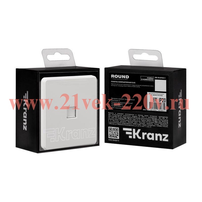 Механизм компьютерной розетки скрытой установки KRANZ предназначен для проводного подключения устройств к сети интернет посредством кабеля RJ45 CAT6.