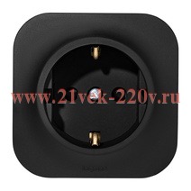 Электрическая розетка 2К+З (с контактом заземления) с защитными шторками 6A-250В~ черная Legrand Quteo
