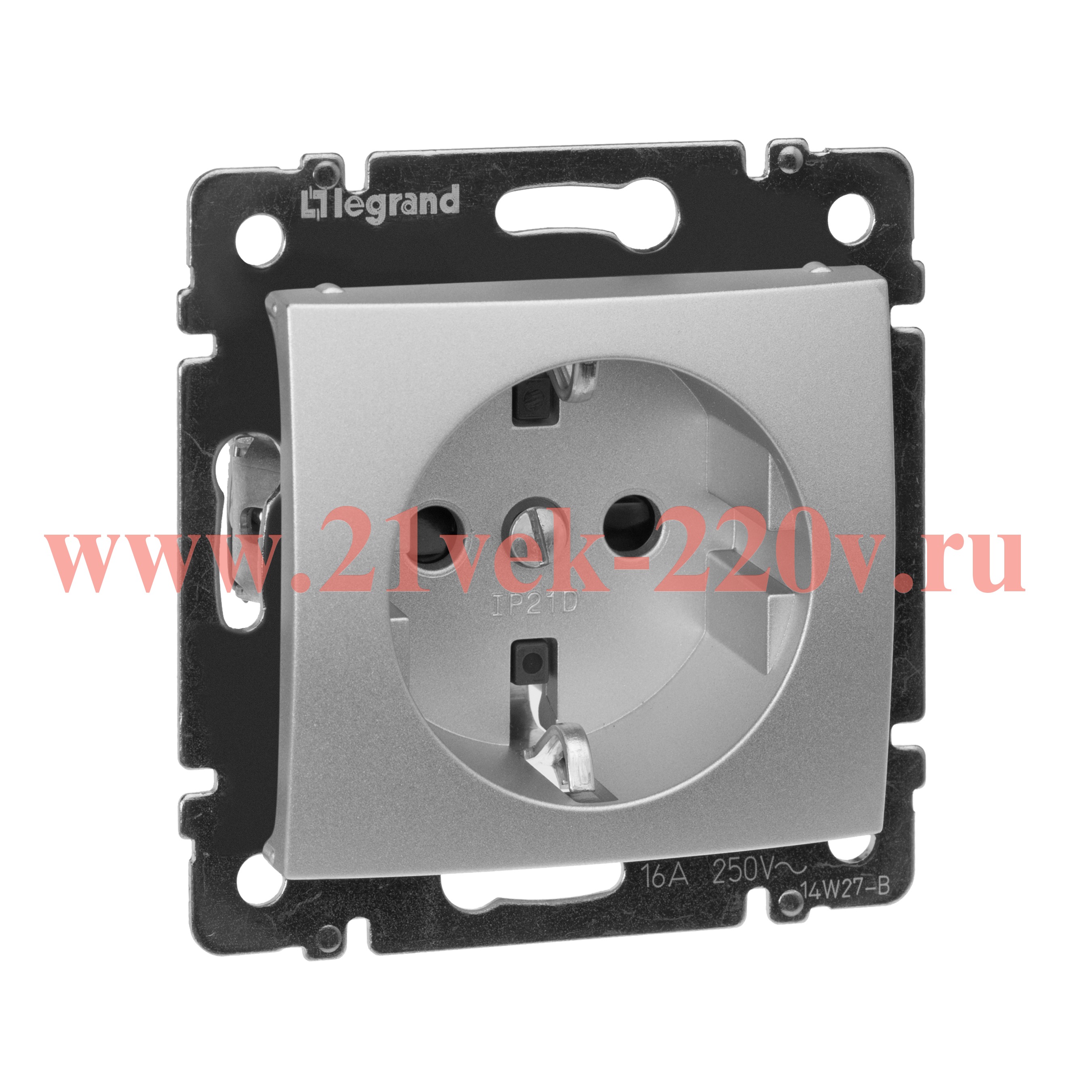 Розетка с заземлением с защитными шторками Legrand серии Valena 16А 250В, винтовые клеммы. Цвет - алюминий.