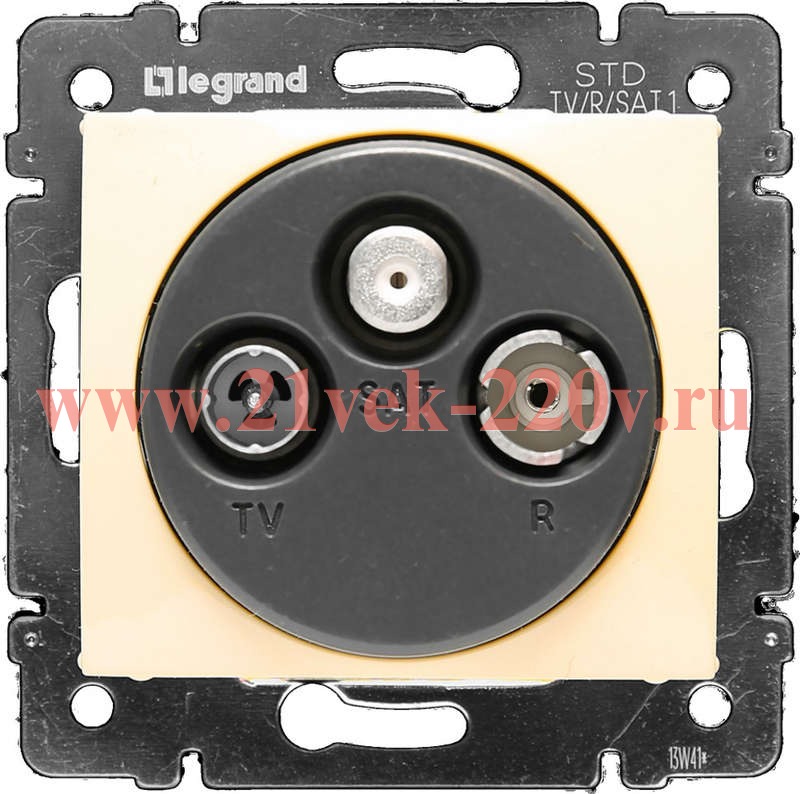 Простая телевизионная розетка TV-FM-SAT 2400мГц, затухание 1,5дБ, Legrand серии Valena. Цвет - слоновая кость