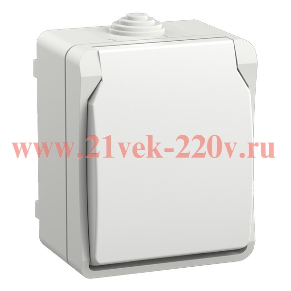 Электрическая герметичная розетка одноместная с крышкой, накладного монтажа с заземляющим контактом, белого цвета ИЭК Форс ERS12-K01-16-54-DC