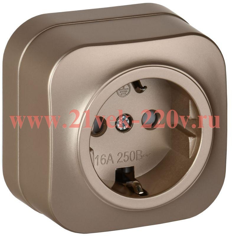 Розетка ОП GLORY РСш20-3-ХШм 16А с заземл. защ. шторки шампань матов. IEK ERH14-K37M-16
