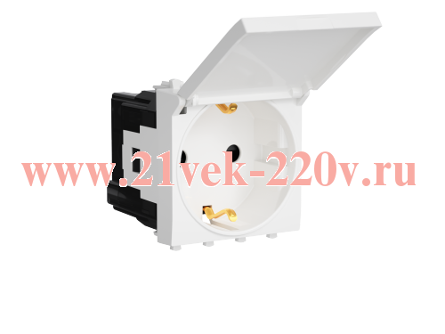 Розетка с крышкой модульная 2P+E со шторками DKC Avanti, белое облако