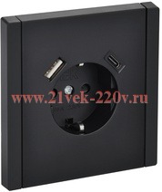 Одноместная электрическая розетка с заземлением и разъемами USB тип-A+С скрытого монтажа черного цвета FP-R14-16-U22-018-K02