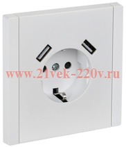 Одноместная электрическая розетка с заземлением и разъемами USB тип-A скрытого монтажа белого цвета FP-R14-16-U21-D31-K01