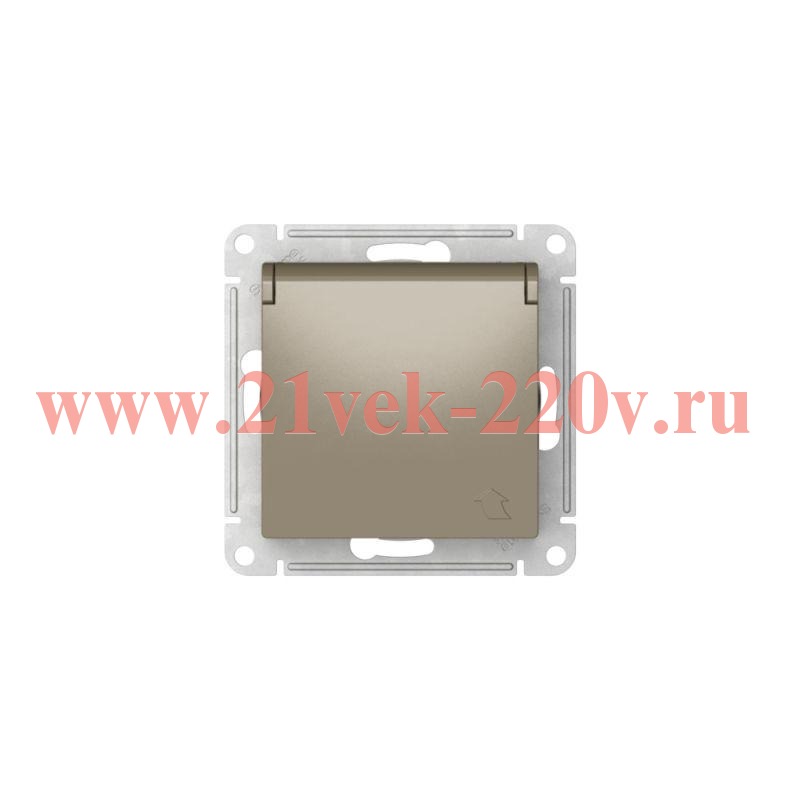 Встраиваемая электрическая силовая розетка с заземлением, шторками и крышкой цвета шампань, пружинные клеммы, АтласДизайн ATN000546S
