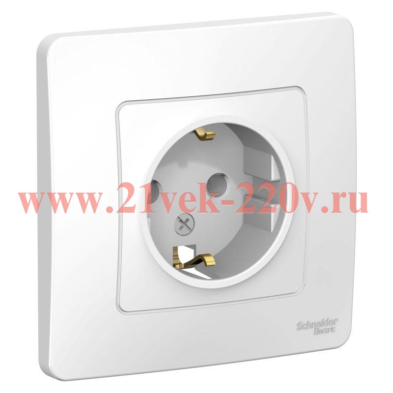 Механизм однопостовой розетки скрытого монтажа (встраиваемый) с заземляющим контактом, без защитных шторок, Бланка Систем Электрик, белого цвета