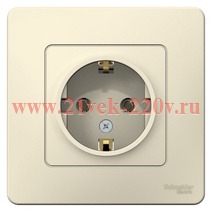 Механизм однопостовой розетки скрытого монтажа (встраиваемый) с заземляющим контактом, без защитных шторок, Бланка Систем Электрик, молочного цвета