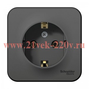 Розетка О/У без заземления, со шторками, с изолирующей пластиной, 16А, 250В, антрацит Schneider Electric Blanca