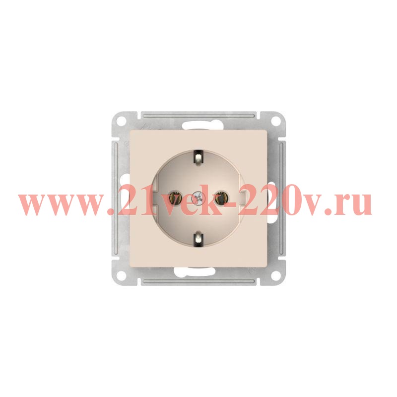 Встраиваемая электрическая силовая розетка с заземлением бежевого цвета, пружинные клеммы, АтласДизайн ATN000243S