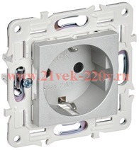 Одноместная электрическая розетка с защитными шторками и заземляющими контактами, винтовые зажимы скрытого монтажа цвета серебро