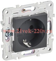 Одноместная электрическая розетка с защитными шторками и заземляющими контактами, винтовые зажимы скрытого монтажа цвета титан
