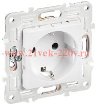 Одноместная электрическая розетка с защитными шторками и заземляющими контактами, винтовые зажимы скрытого монтажа цвет белый