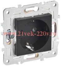 Одноместная электрическая розетка с заземляющими контактами, винтовые зажимы, скрытого монтажа цвет черный