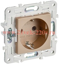 Одноместная электрическая розетка с заземляющими контактами, винтовые зажимы скрытого монтажа песочного цвета