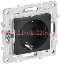Одноместная электрическая розетка с защитными шторками и заземляющими контактами, пружинные зажимы скрытого монтажа цвета графит