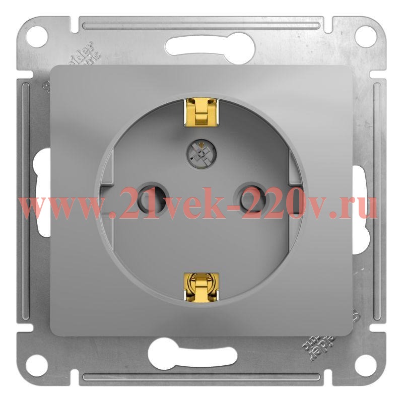 Розетка с контактом заземления и шторками 16A, цвет - алюминий Schneider Electric Glossa