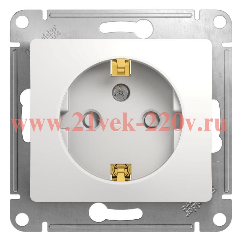 Белая розетка с контактом заземления и шторками 16A SE Glossa для скрытой установки GSL000145