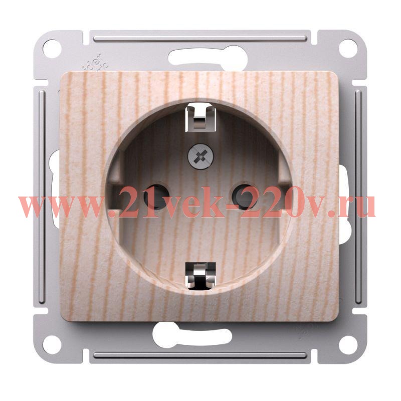 Розетка с контактом заземления и шторками 16A для скрытой установки, цвет - сосна, SE Glossa
