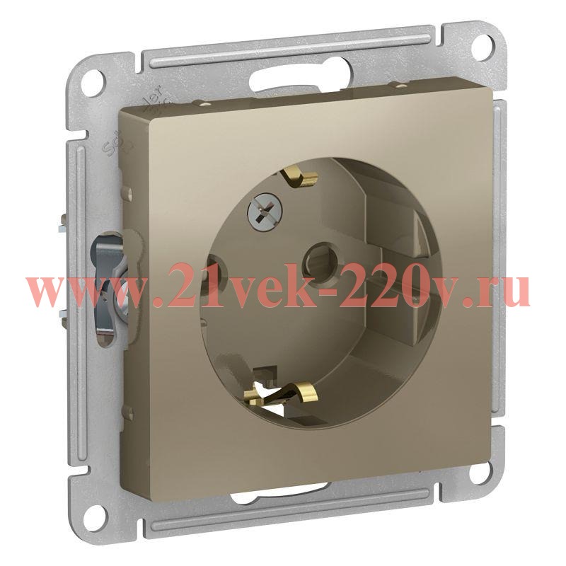 Розетка силовая встраиваемая с заземлением и шторками, Атлас Дизайн, цвет шампань ATN000545