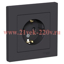 Розетка силовая встраиваемая с заземлением и шторками, с рамкой, Атлас Дизайн, цвет карбон ATN001044