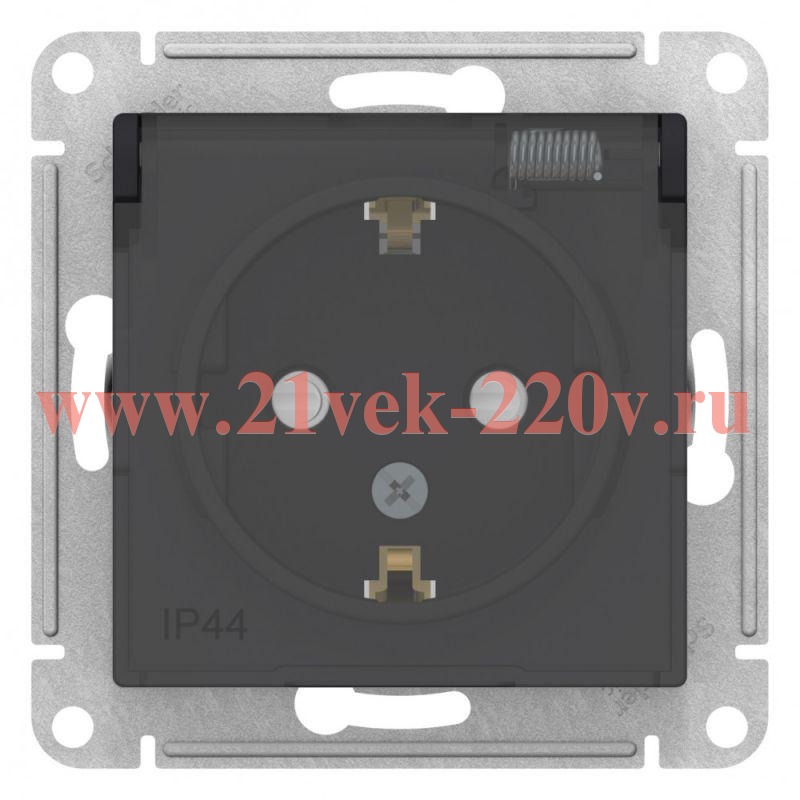 Розетка силовая влагозащищенная с заземлением, шторками и крышкой, цвета карбон