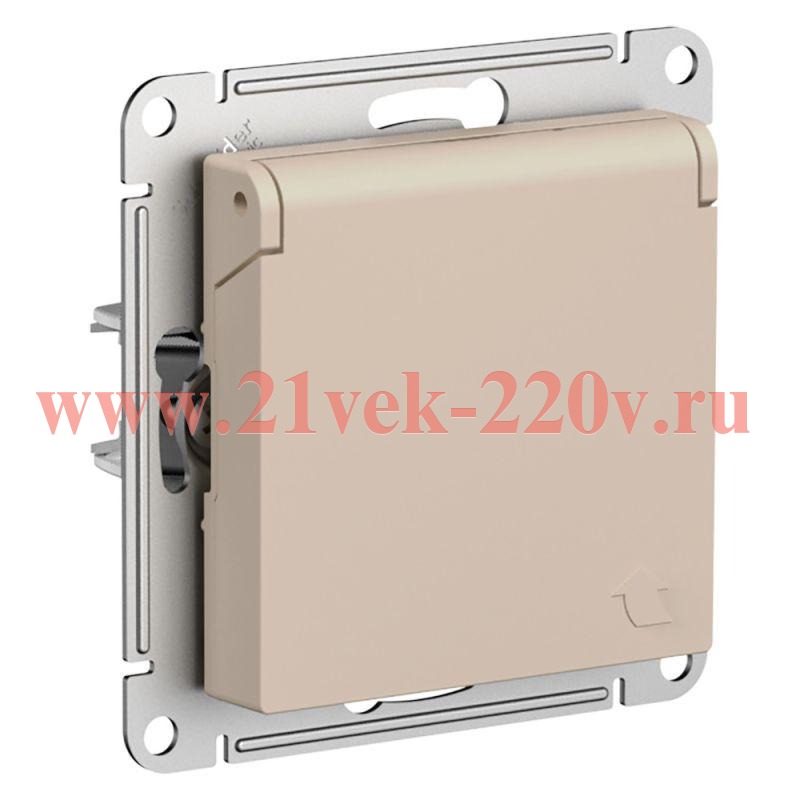 Розетка силовая встраиваемая с заземлением, шторками и крышкой песочного цвета, АтласДизайн ATN001246