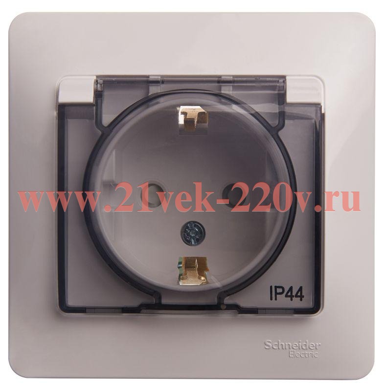 Белая розетка с контактом заземления, со шторками, с крышкой 16A IP44 Schneider Electric Glossa