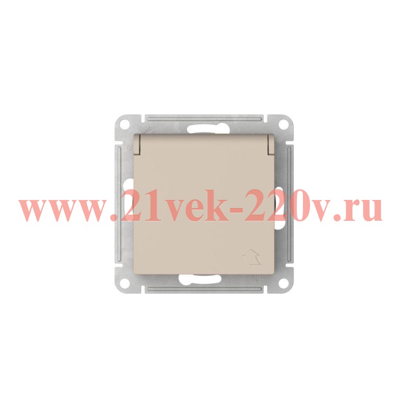 Встраиваемая электрическая силовая розетка с заземлением, шторками и крышкой песочного цвета, пружинные клеммы, АтласДизайн ATN001246S