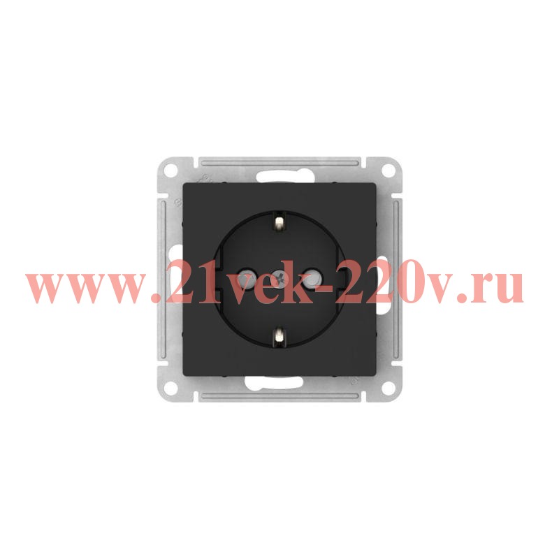 Встраиваемая электрическая силовая розетка с заземлением и защитными шторками, цвет карбон, пружинные клеммы, АтласДизайн ATN001045S