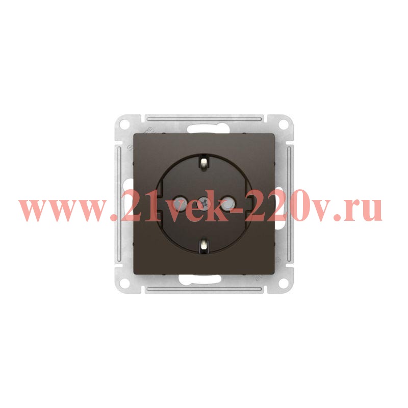 Встраиваемая электрическая силовая розетка с заземлением и защитными шторками, цвет мокко, пружинные клеммы, АтласДизайн ATN000645S