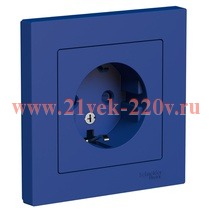 Розетка силовая встраиваемая с заземлением и шторками, с рамкой цвета аквамарин, АтласДизайн