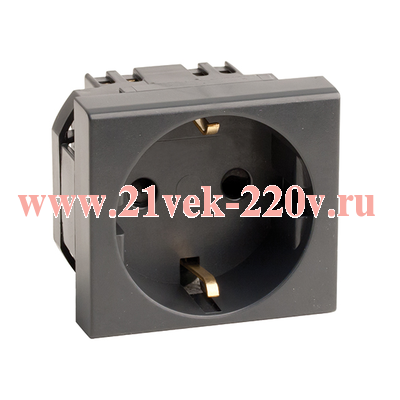 Силовая розетка со шторками, двумя полюсами и заземлением на 2 модуля черного цвета ДКС серии VIVA