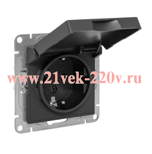 Розетка СП Эпика 16А IP44 с заземл. защ. шторки c крышкой механизм черн. EKF