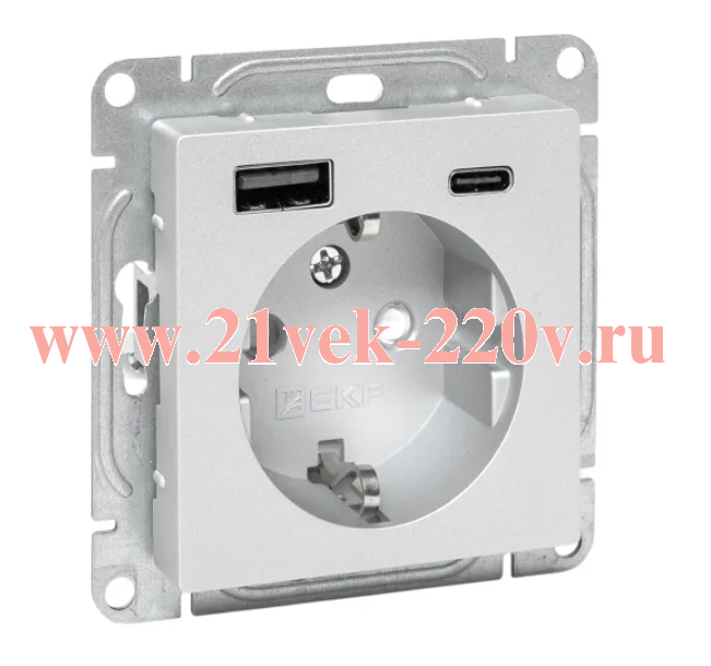 Силовая розетка с двумя портами USB Type-A и Type-C EKF коллекции «Эпика» с заземлением и защитными шторками - надежное и стильное решение для безопасного подключения электроприборов. USB разъёмы позволяют напрямую заряжать устройства без использования адаптеров. Защитные шторки на контактах предотвращают случайный контакт с токоведущими частями, обеспечивая безопасность детей и домашних животных. Корпус выполнен из прочного пластика, устойчивого к воздействию ультрафиолета, что обеспечивает долговечность материала. Изделие совместимо с медным и алюминиевым кабелем, имеет винтовые клеммы. Винты имеют одинаковый шлиц, поэтому замена биты при монтаже не требуется. Для гармоничного оформления интерьера рекомендуется использовать с рамкой из той же коллекции.