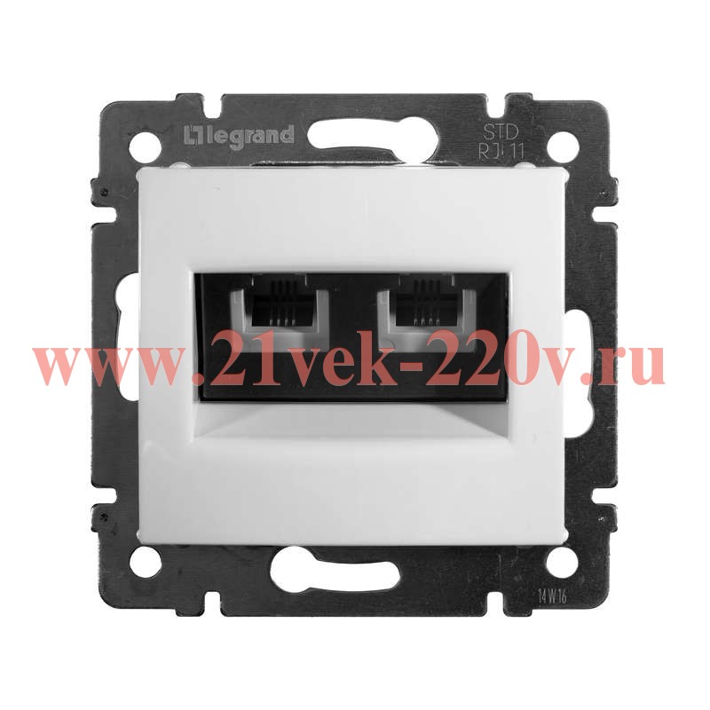 Телефонная двойная розетка с двумя разъемами RJ11 Legrand серии Valena. Цвет - белый