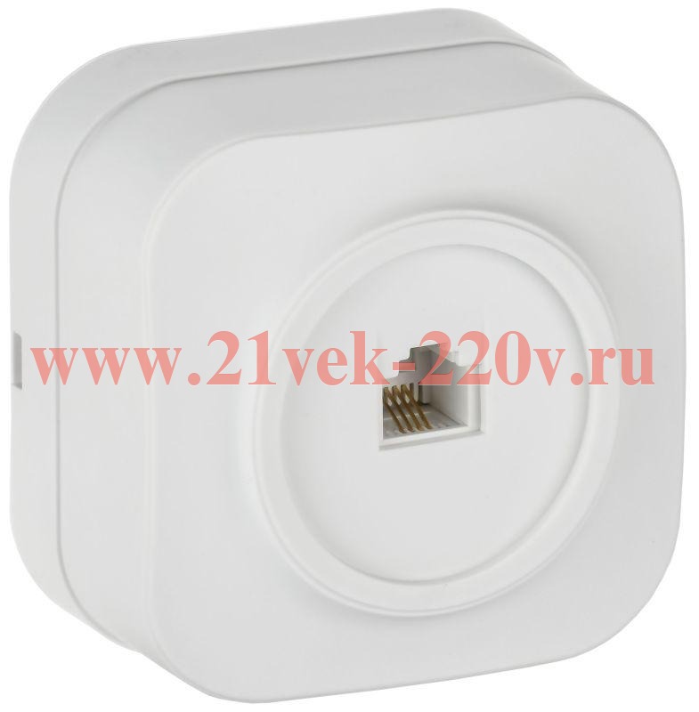 Одинарная телекоммуникационная розетка с разъемом RJ11, накладного монтажа Глори ИЭК матового белого цвета ETH10-K01M