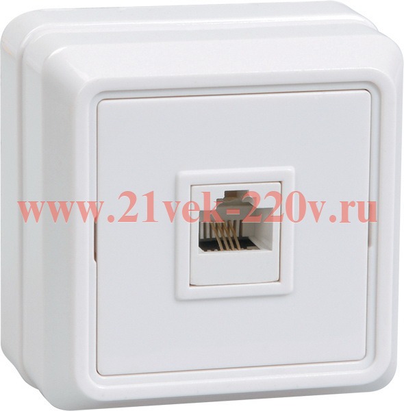 Одинарная телекоммуникационная розетка с разъемом RJ11 накладного монтажа, ИЭК белого цвета
