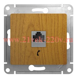Телефонная розетка RJ11 скрытой установки, цвет - дерево дуб, SE Glossa