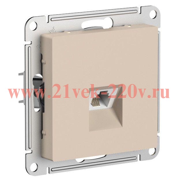 Розетка телефонная RJ11 АтласДизайн скрытой установки песочного цвета ATN001281