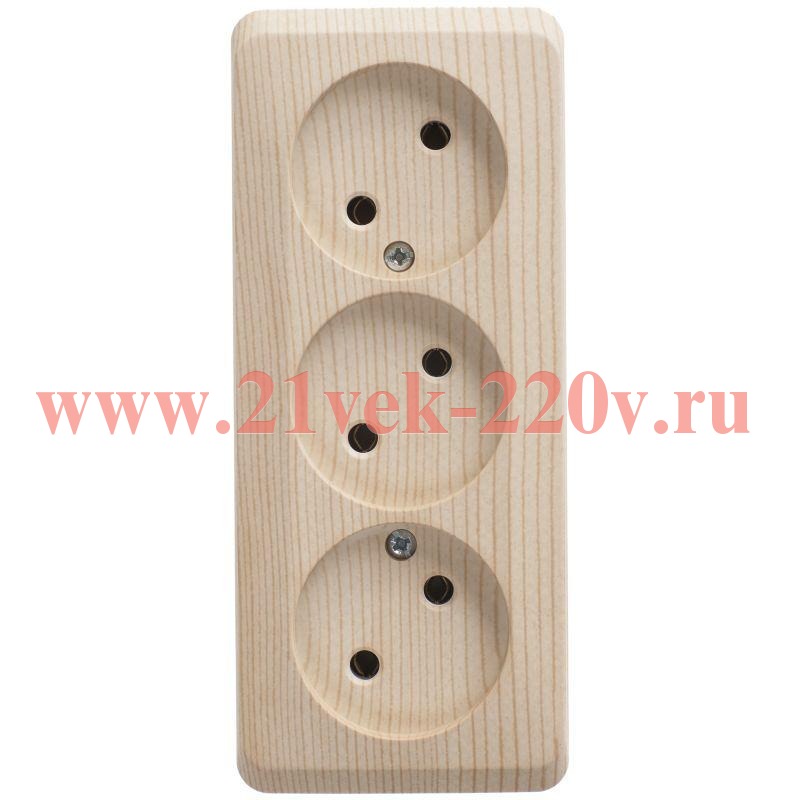 Тройная розетка без заземления без шторок Этюд под дерево "сосна" Schneider Electric