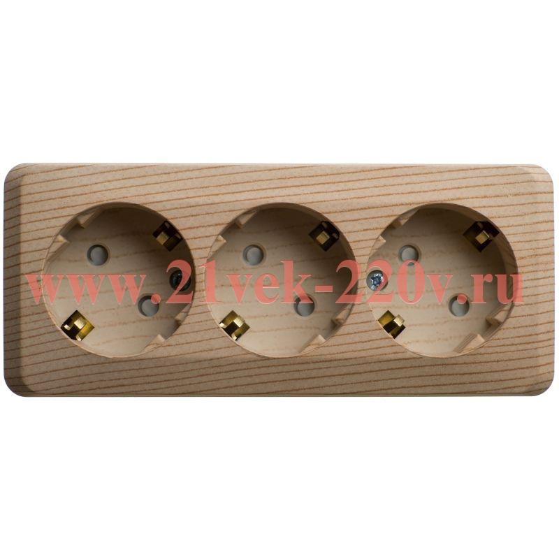 Тройная розетка с заземлением со шторками Этюд под дерево "сосна" Schneider Electric