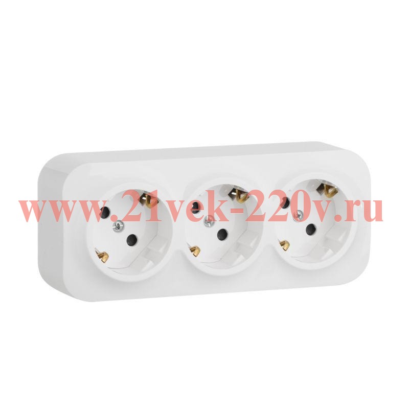Розеточный блок тройной 2x2К+З (с контактом заземления) с защитными шторками белый Легран Кутео
