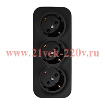 Электрическая розеточный блок тройной 2x2К+З (с контактом заземления) с защитными шторками черный Легран Кутео