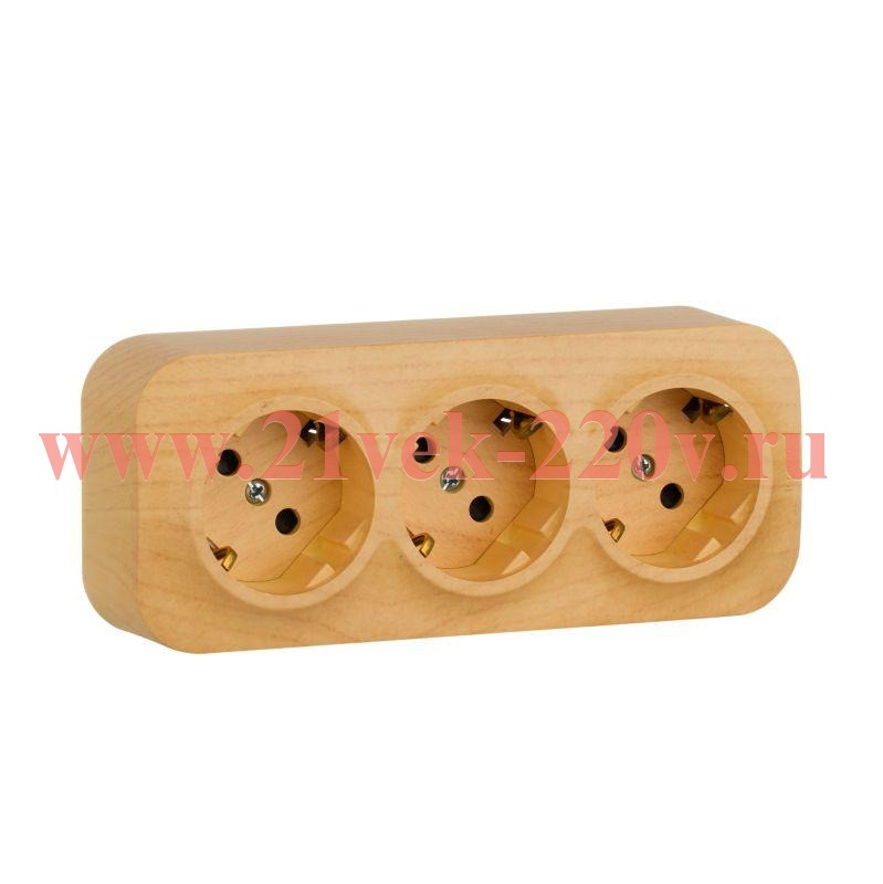 Розеточный блок тройной 2x2К+З (с контактом заземления) с защитными шторками цвет дерево Легран Кутео