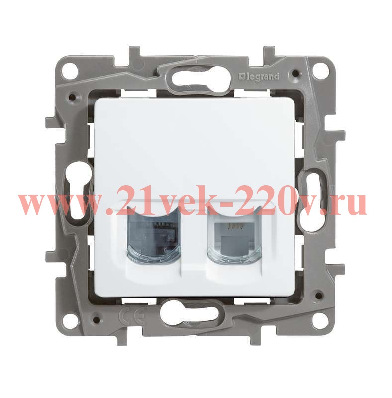 Розетка телефон+компьютер (672252) с одним разъемом RJ11 и одним разъемом RJ45 категории 5 UTP фирмы Легранд (Legrand) серии Этика (Etika). Цвет - белый.