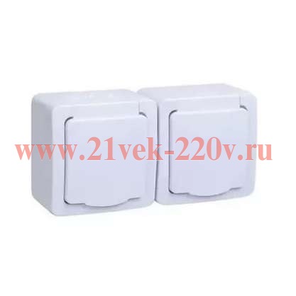 Розетка двухместная с заземляющим контактом с белой крышкой для открытой установки ГЕРМЕС PLUS IP54 РСб22-3-ГБб белая IEK ERMP22-K01-16-54-EC