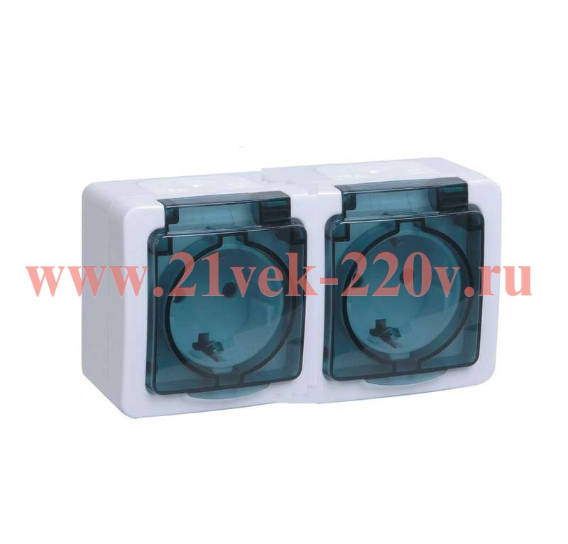 Розетка двухместная с заземляющим контактом с дымчатой крышкой для открытой установки ГЕРМЕС PLUS IP54 РСб22-3-ГБд белая IEK ERMP22-K03-16-54-EC